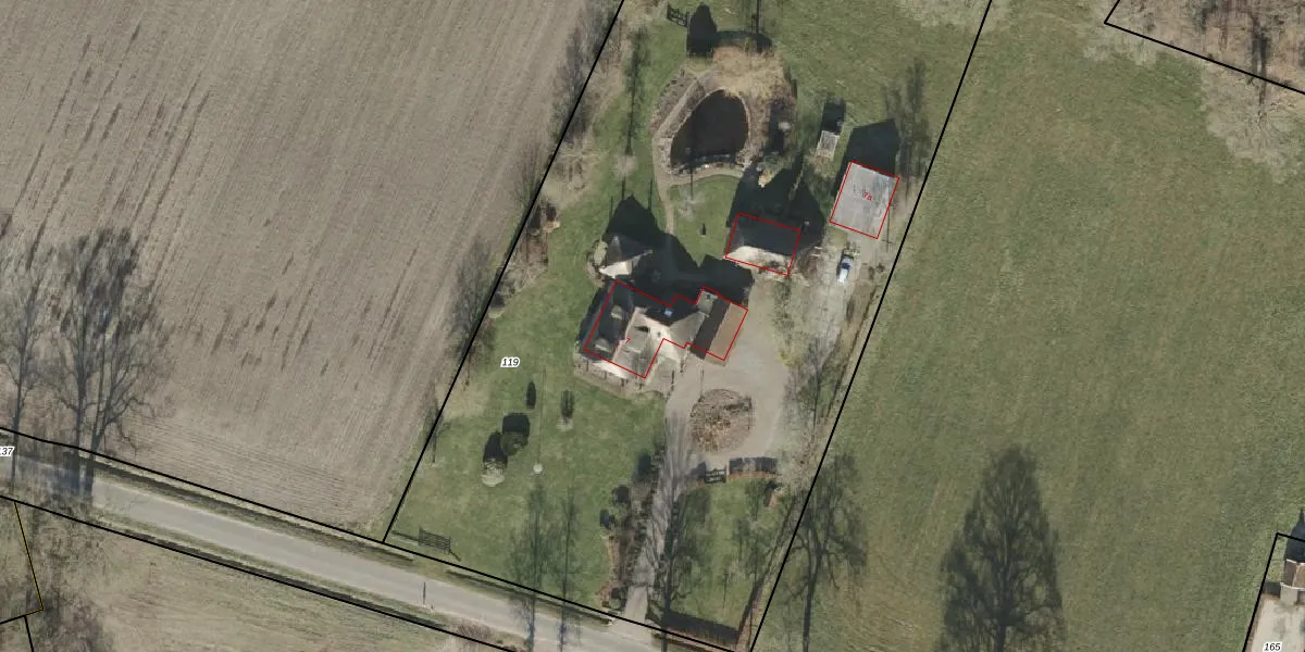 Het perceel waarop Dennenweg 7 staat heeft een oppervlakte van 6110 m². Dit is een zeer groot perceel. De perceeloppervlakte wordt geregistreerd door het Kadaster. Gedetailleerde informatie over de maten van dit perceel kunt u vinden in het rapport Kadastrale kaart met maatvoering van Dennenweg 7.