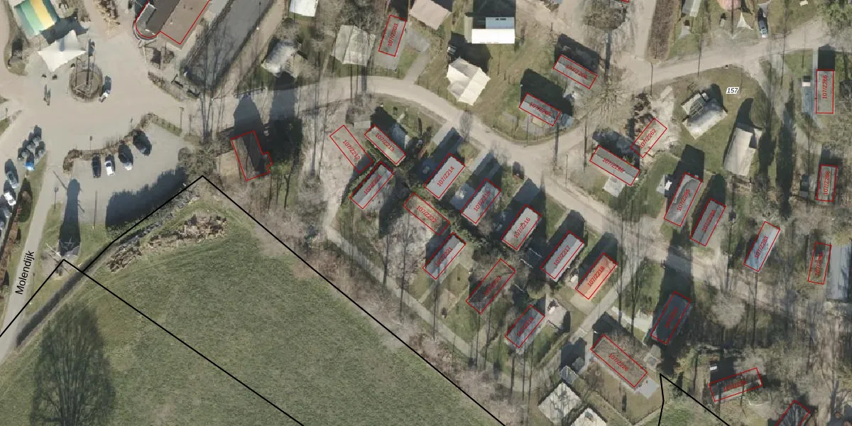 Molendijk 107-Z222 is gelegen op kadastraal perceel WDN02X157. Deze kadastrale aanduiding is uniek en wordt gebruikt door het Kadaster om eigendomsrechten en andere zakelijke rechten vast te leggen. Het perceel maakt onderdeel uit van de kadastrale gemeente Wierden.