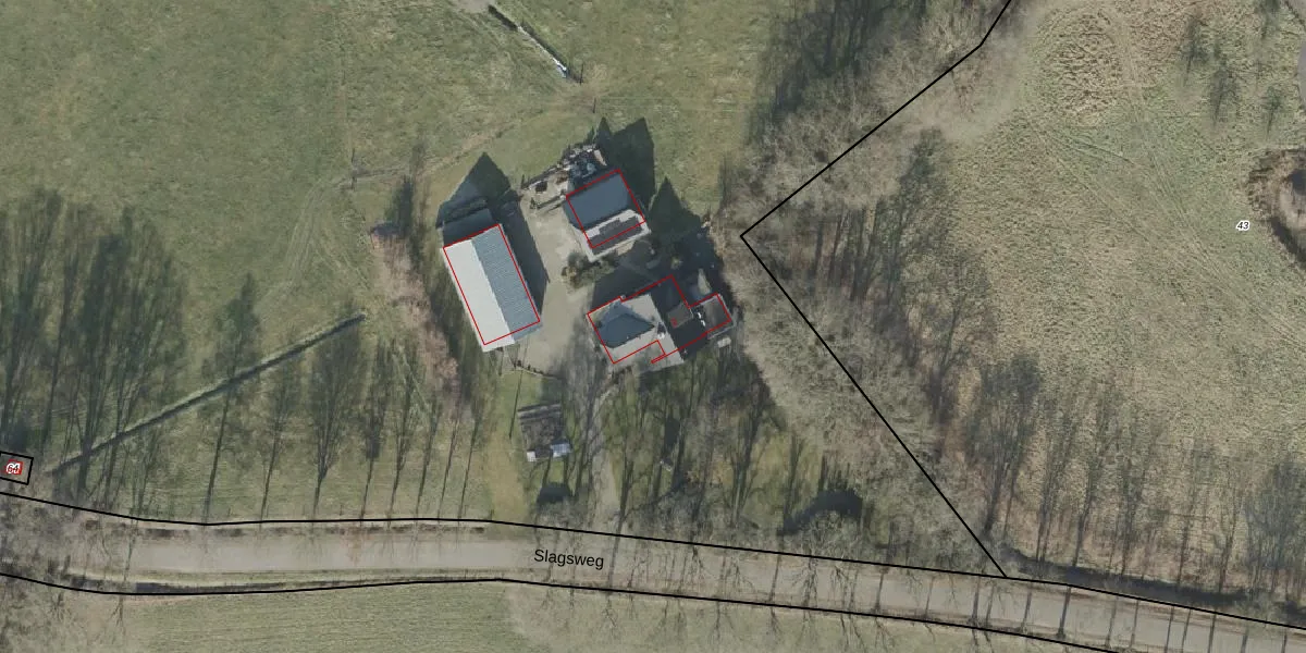 Het perceel waarop Slagsweg 2 staat heeft een oppervlakte van 2,8 ha. Dit is een zeer groot perceel. De perceeloppervlakte wordt geregistreerd door het Kadaster. Gedetailleerde informatie over de maten van dit perceel kunt u vinden in het rapport Kadastrale kaart met maatvoering van Slagsweg 2.