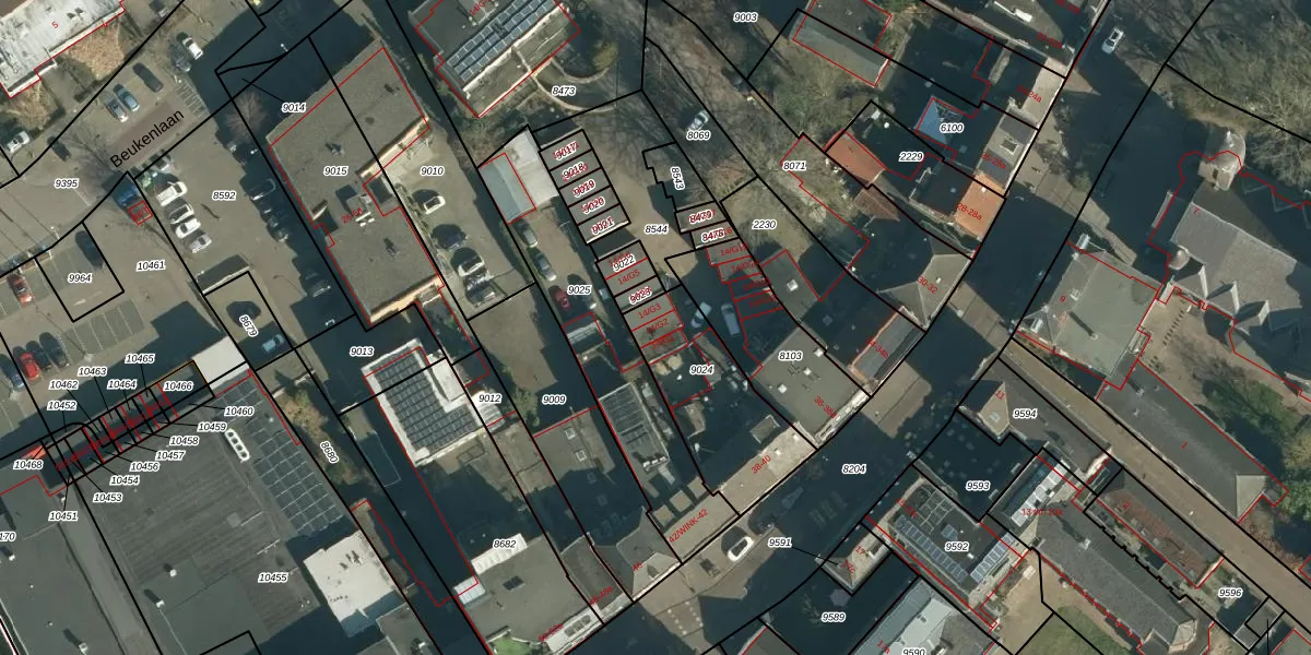 Beukenlaan 14-G2 is gelegen op kadastraal perceel ZDT02K9024. Deze kadastrale aanduiding is uniek en wordt gebruikt door het Kadaster om eigendomsrechten en andere zakelijke rechten vast te leggen. Het perceel maakt onderdeel uit van de kadastrale gemeente Zundert.