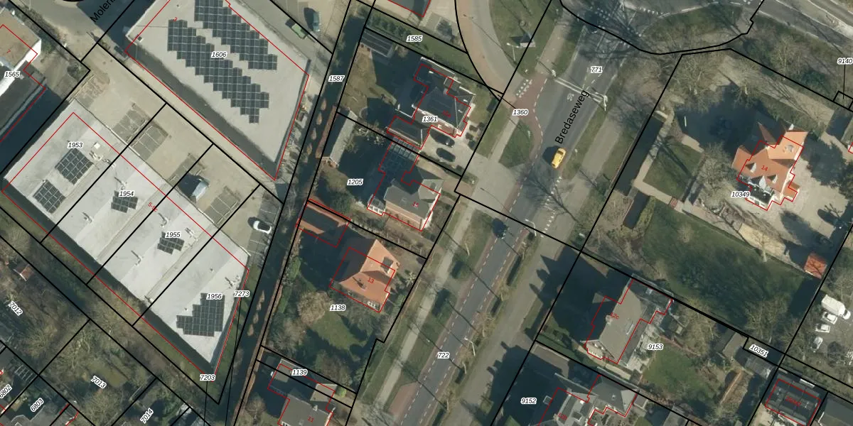 Het perceel waarop Bredaseweg 15 staat heeft een oppervlakte van 700 m². Dit is een groot perceel. De perceeloppervlakte wordt geregistreerd door het Kadaster. Gedetailleerde informatie over de maten van dit perceel kunt u vinden in het rapport Kadastrale kaart met maatvoering van Bredaseweg 15.