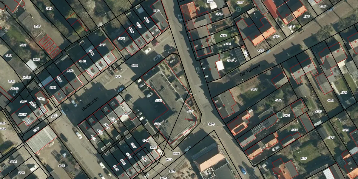 Buitentuin 5 is gelegen op kadastraal perceel ZDT02K9763. Deze kadastrale aanduiding is uniek en wordt gebruikt door het Kadaster om eigendomsrechten en andere zakelijke rechten vast te leggen. Het perceel maakt onderdeel uit van de kadastrale gemeente Zundert.
