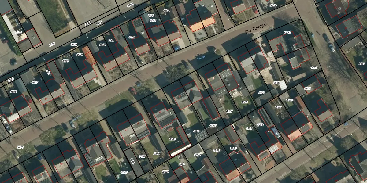 Het perceel waarop De Tuintjes 11 staat heeft een oppervlakte van 375 m². Dit is een groot perceel. De perceeloppervlakte wordt geregistreerd door het Kadaster. Gedetailleerde informatie over de maten van dit perceel kunt u vinden in het rapport Kadastrale kaart met maatvoering van De Tuintjes 11.