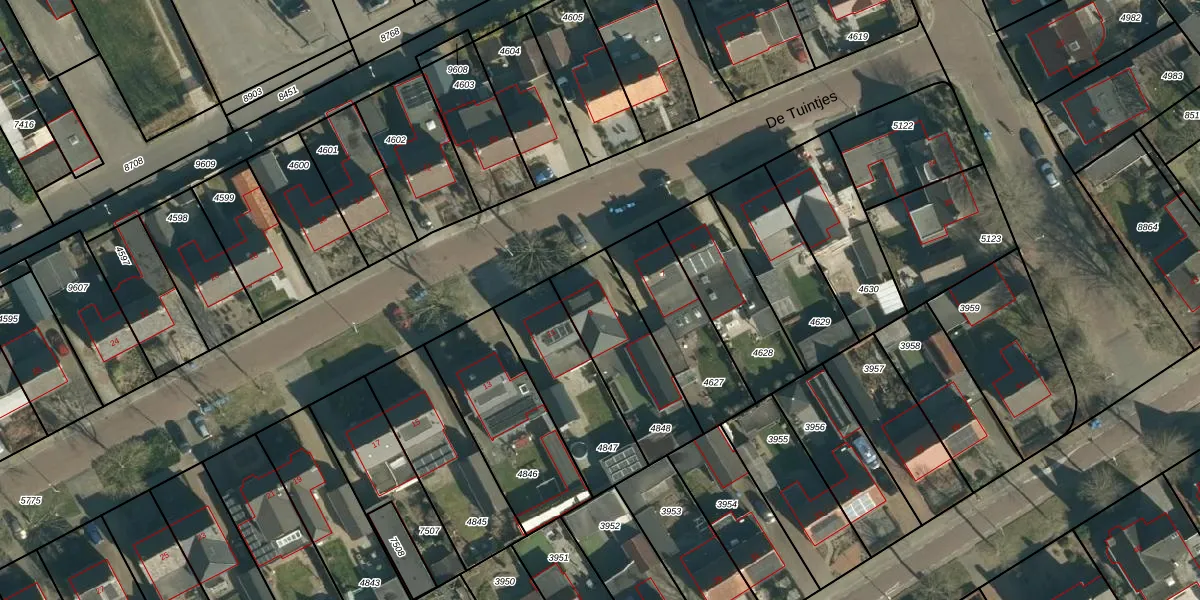 Het perceel waarop De Tuintjes 9 staat heeft een oppervlakte van 375 m². Dit is een groot perceel. De perceeloppervlakte wordt geregistreerd door het Kadaster. Gedetailleerde informatie over de maten van dit perceel kunt u vinden in het rapport Kadastrale kaart met maatvoering van De Tuintjes 9.