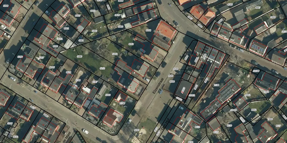 Het perceel waarop Elzenstraat 4 staat heeft een oppervlakte van 636 m². Dit is een groot perceel. De perceeloppervlakte wordt geregistreerd door het Kadaster. Gedetailleerde informatie over de maten van dit perceel kunt u vinden in het rapport Kadastrale kaart met maatvoering van Elzenstraat 4.