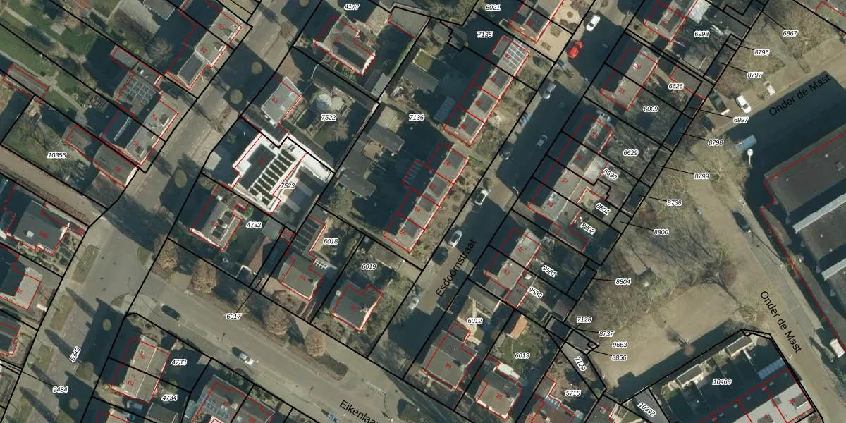 Esdoornstraat 54 is gelegen op kadastraal perceel ZDT02K7136. Deze kadastrale aanduiding is uniek en wordt gebruikt door het Kadaster om eigendomsrechten en andere zakelijke rechten vast te leggen. Het perceel maakt onderdeel uit van de kadastrale gemeente Zundert.