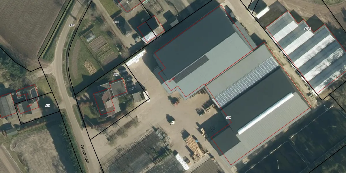 Het perceel waarop Goorbaan 9-a staat heeft een oppervlakte van 1,4 ha. Dit is een zeer groot perceel. De perceeloppervlakte wordt geregistreerd door het Kadaster. Gedetailleerde informatie over de maten van dit perceel kunt u vinden in het rapport Kadastrale kaart met maatvoering van Goorbaan 9-a.