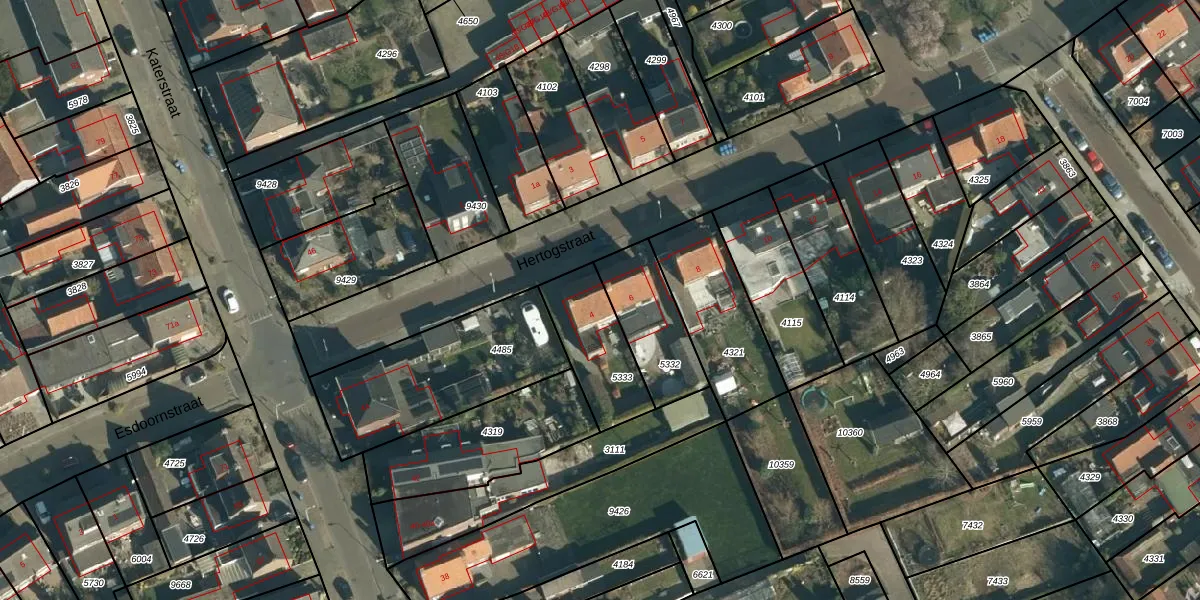 Hertogstraat 4 is gelegen op kadastraal perceel ZDT02K5333. Deze kadastrale aanduiding is uniek en wordt gebruikt door het Kadaster om eigendomsrechten en andere zakelijke rechten vast te leggen. Het perceel maakt onderdeel uit van de kadastrale gemeente Zundert.