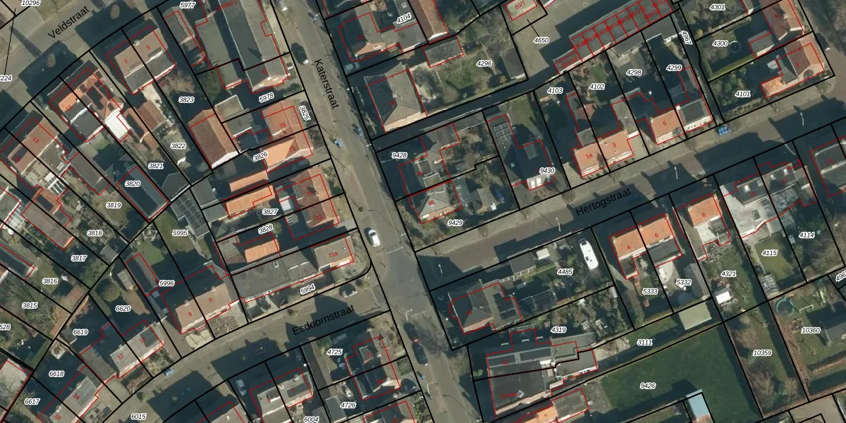 Katerstraat 46 is gelegen op kadastraal perceel ZDT02K9429. Deze kadastrale aanduiding is uniek en wordt gebruikt door het Kadaster om eigendomsrechten en andere zakelijke rechten vast te leggen. Het perceel maakt onderdeel uit van de kadastrale gemeente Zundert.