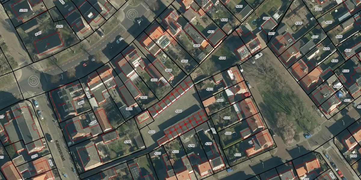 Het perceel waarop Katerstraat 48-G7 staat heeft een oppervlakte van 955 m². Dit is een groot perceel. De perceeloppervlakte wordt geregistreerd door het Kadaster. Gedetailleerde informatie over de maten van dit perceel kunt u vinden in het rapport Kadastrale kaart met maatvoering van Katerstraat 48-G7.