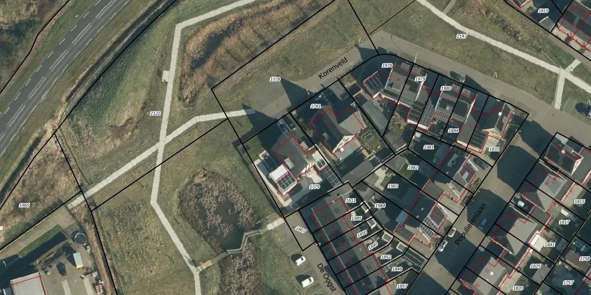 Het perceel waarop Korenveld 13 staat heeft een oppervlakte van 627 m². Dit is een groot perceel. De perceeloppervlakte wordt geregistreerd door het Kadaster. Gedetailleerde informatie over de maten van dit perceel kunt u vinden in het rapport Kadastrale kaart met maatvoering van Korenveld 13.