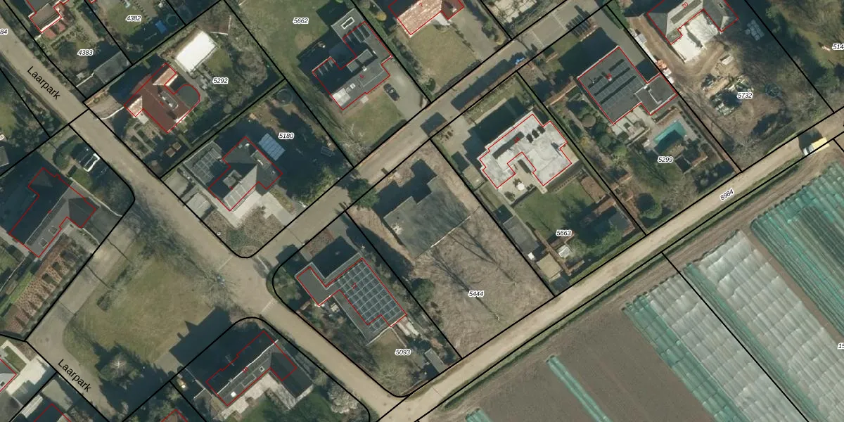 Laarpark 14 is gelegen op kadastraal perceel ZDT02K5444. Deze kadastrale aanduiding is uniek en wordt gebruikt door het Kadaster om eigendomsrechten en andere zakelijke rechten vast te leggen. Het perceel maakt onderdeel uit van de kadastrale gemeente Zundert.