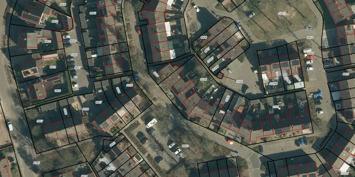 Het perceel waarop Lavendelring 30 staat heeft een oppervlakte van 844 m². Dit is een groot perceel. De perceeloppervlakte wordt geregistreerd door het Kadaster. Gedetailleerde informatie over de maten van dit perceel kunt u vinden in het rapport Kadastrale kaart met maatvoering van Lavendelring 30.
