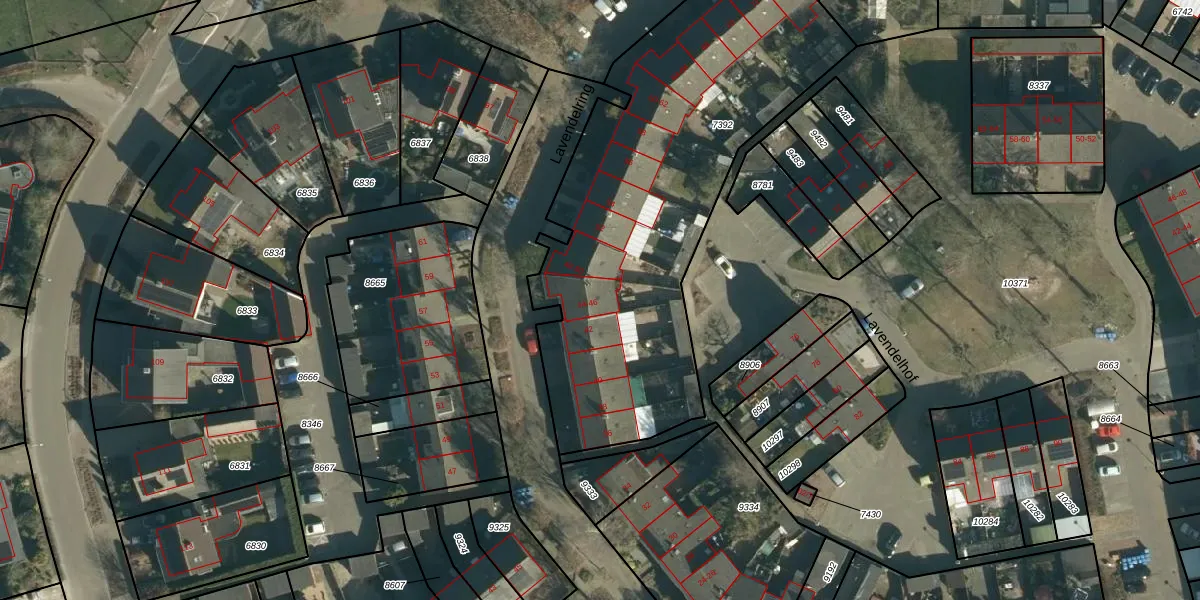 Het perceel waarop Lavendelring 46 staat heeft een oppervlakte van 2127 m². Dit is een zeer groot perceel. De perceeloppervlakte wordt geregistreerd door het Kadaster. Gedetailleerde informatie over de maten van dit perceel kunt u vinden in het rapport Kadastrale kaart met maatvoering van Lavendelring 46.