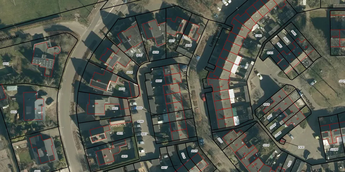 Het perceel waarop Lavendelring 57 staat heeft een oppervlakte van 649 m². Dit is een groot perceel. De perceeloppervlakte wordt geregistreerd door het Kadaster. Gedetailleerde informatie over de maten van dit perceel kunt u vinden in het rapport Kadastrale kaart met maatvoering van Lavendelring 57.