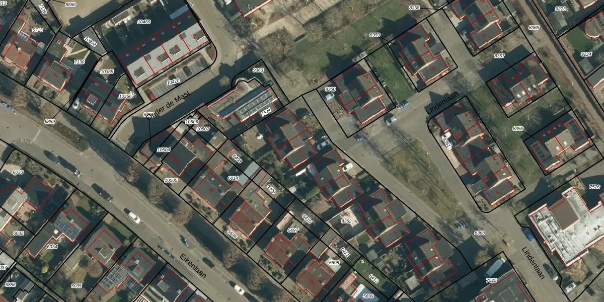 Het perceel waarop Lindenlaan 13 staat heeft een oppervlakte van 1858 m². Dit is een zeer groot perceel. De perceeloppervlakte wordt geregistreerd door het Kadaster. Gedetailleerde informatie over de maten van dit perceel kunt u vinden in het rapport Kadastrale kaart met maatvoering van Lindenlaan 13.
