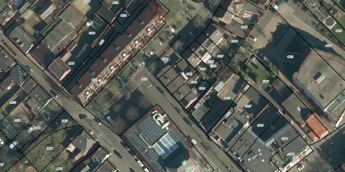 Het perceel waarop Markt 12-b staat heeft een oppervlakte van 114 m². Dit is een middelgroot perceel. De perceeloppervlakte wordt geregistreerd door het Kadaster. Gedetailleerde informatie over de maten van dit perceel kunt u vinden in het rapport Kadastrale kaart met maatvoering van Markt 12-b.