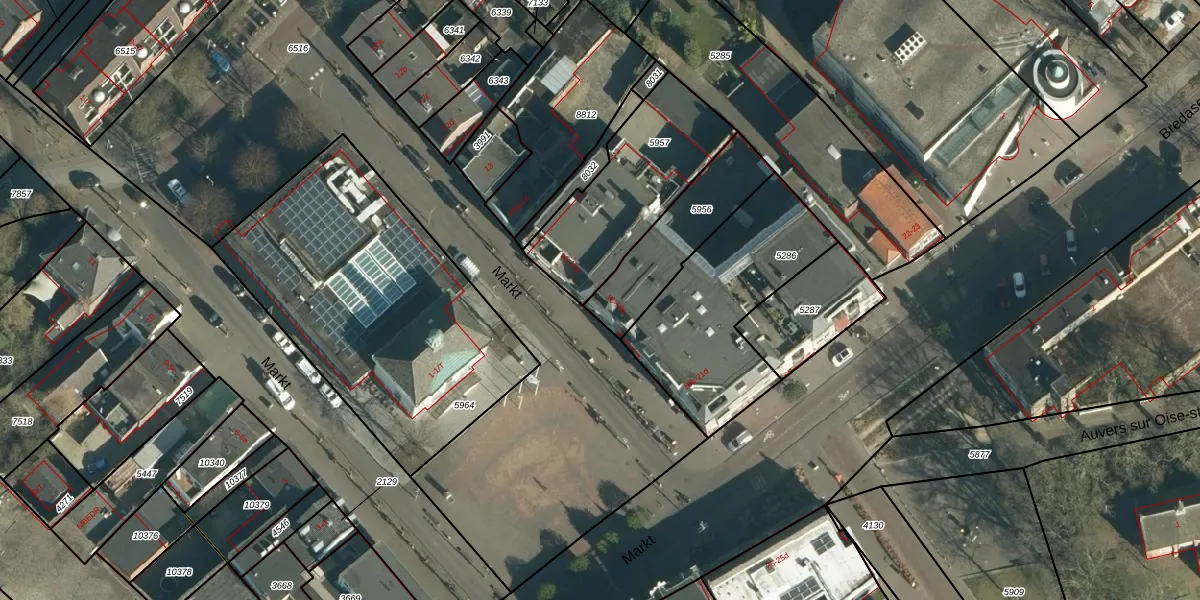 Het perceel waarop Markt 18 staat heeft een oppervlakte van 323 m². Dit is een groot perceel. De perceeloppervlakte wordt geregistreerd door het Kadaster. Gedetailleerde informatie over de maten van dit perceel kunt u vinden in het rapport Kadastrale kaart met maatvoering van Markt 18.