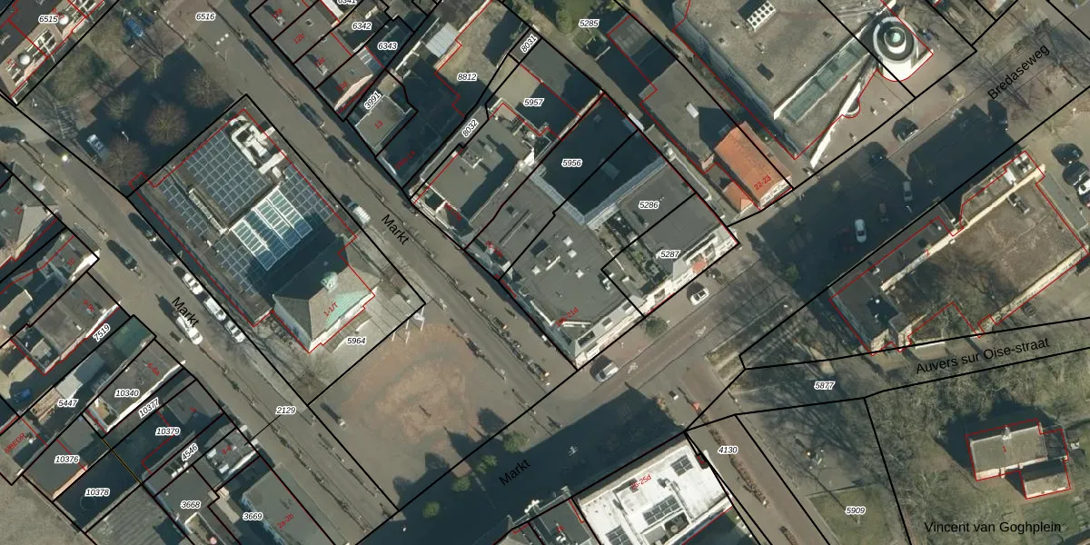 Het perceel waarop Markt 19-d staat heeft een oppervlakte van 700 m². Dit is een groot perceel. De perceeloppervlakte wordt geregistreerd door het Kadaster. Gedetailleerde informatie over de maten van dit perceel kunt u vinden in het rapport Kadastrale kaart met maatvoering van Markt 19-d.