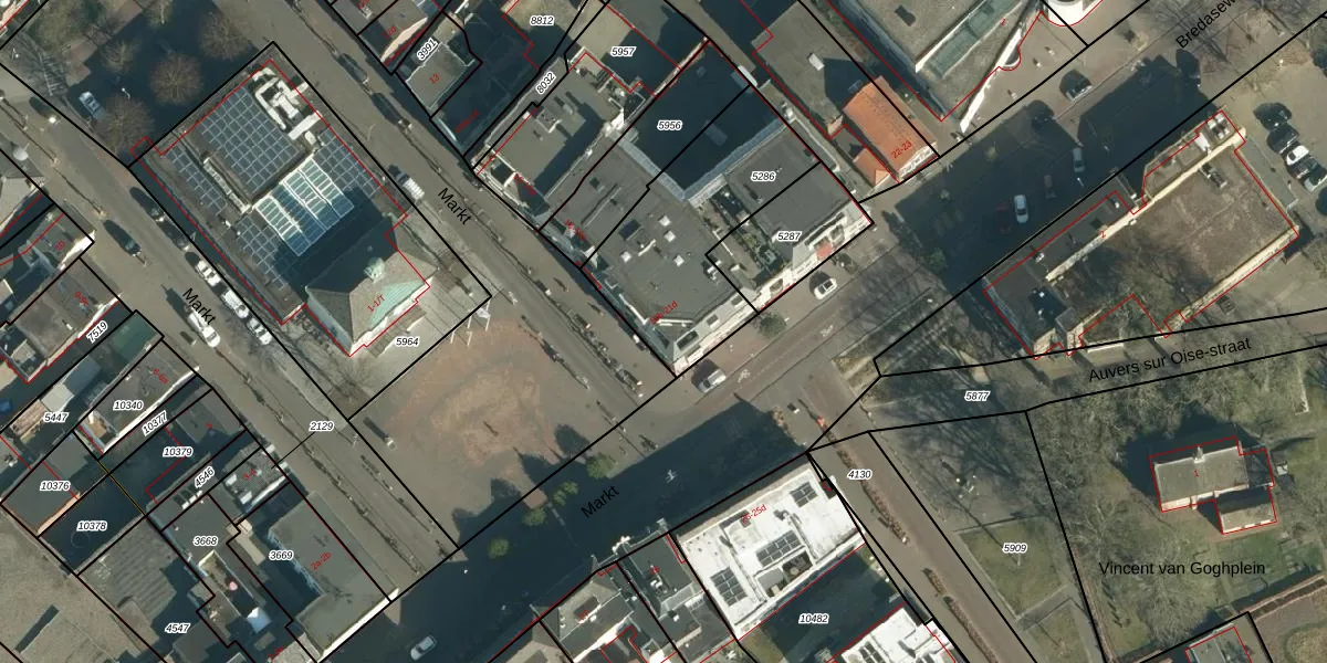 Het perceel waarop Markt 20-d staat heeft een oppervlakte van 700 m². Dit is een groot perceel. De perceeloppervlakte wordt geregistreerd door het Kadaster. Gedetailleerde informatie over de maten van dit perceel kunt u vinden in het rapport Kadastrale kaart met maatvoering van Markt 20-d.