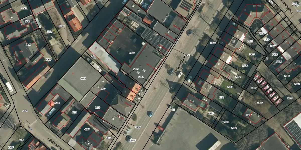 Het perceel waarop Molenstraat 198 staat heeft een oppervlakte van 1005 m². Dit is een zeer groot perceel. De perceeloppervlakte wordt geregistreerd door het Kadaster. Gedetailleerde informatie over de maten van dit perceel kunt u vinden in het rapport Kadastrale kaart met maatvoering van Molenstraat 198.