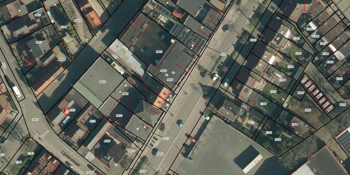 Het perceel waarop Molenstraat 200 staat heeft een oppervlakte van 1005 m². Dit is een zeer groot perceel. De perceeloppervlakte wordt geregistreerd door het Kadaster. Gedetailleerde informatie over de maten van dit perceel kunt u vinden in het rapport Kadastrale kaart met maatvoering van Molenstraat 200.
