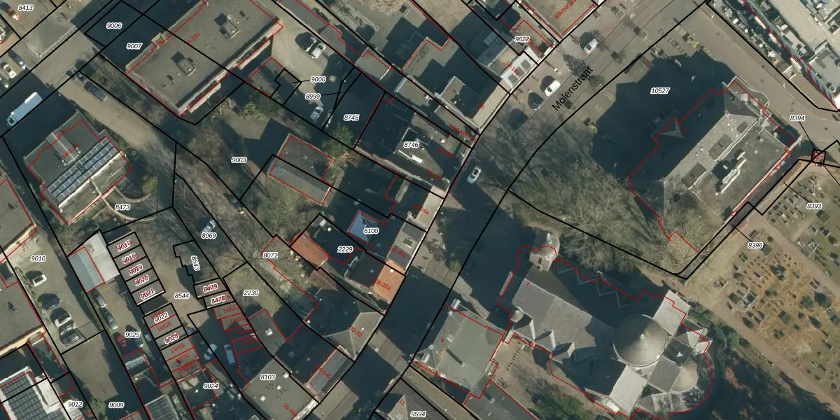 Het perceel waarop Molenstraat 24 staat heeft een oppervlakte van 957 m². Dit is een groot perceel. De perceeloppervlakte wordt geregistreerd door het Kadaster. Gedetailleerde informatie over de maten van dit perceel kunt u vinden in het rapport Kadastrale kaart met maatvoering van Molenstraat 24.