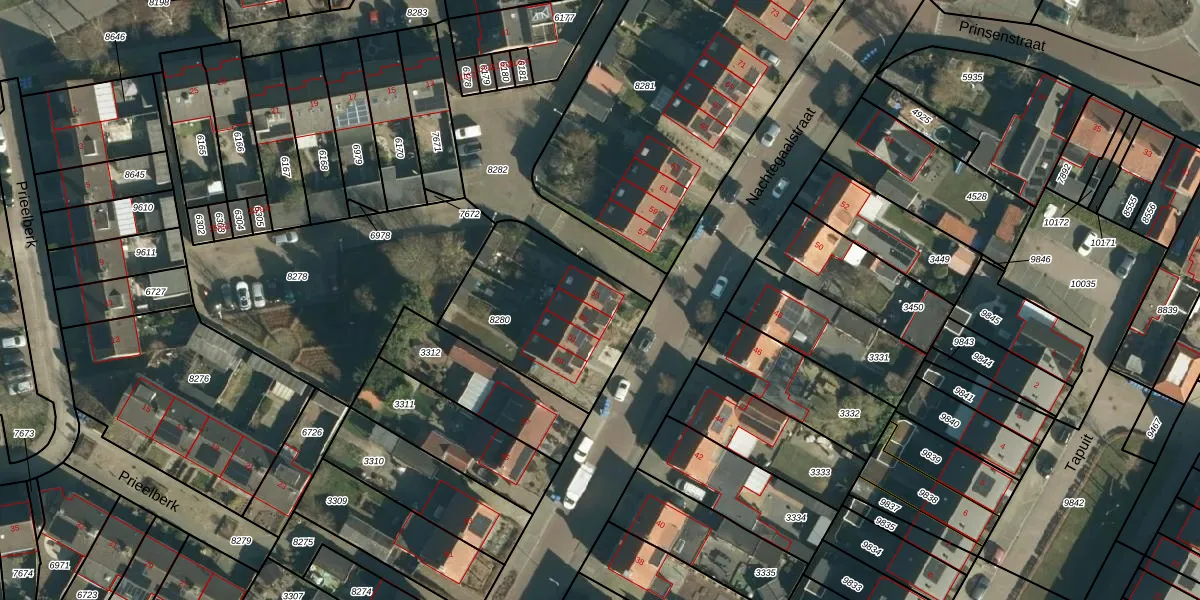 Het perceel waarop Nachtegaalstraat 55 staat heeft een oppervlakte van 630 m². Dit is een groot perceel. De perceeloppervlakte wordt geregistreerd door het Kadaster. Gedetailleerde informatie over de maten van dit perceel kunt u vinden in het rapport Kadastrale kaart met maatvoering van Nachtegaalstraat 55.