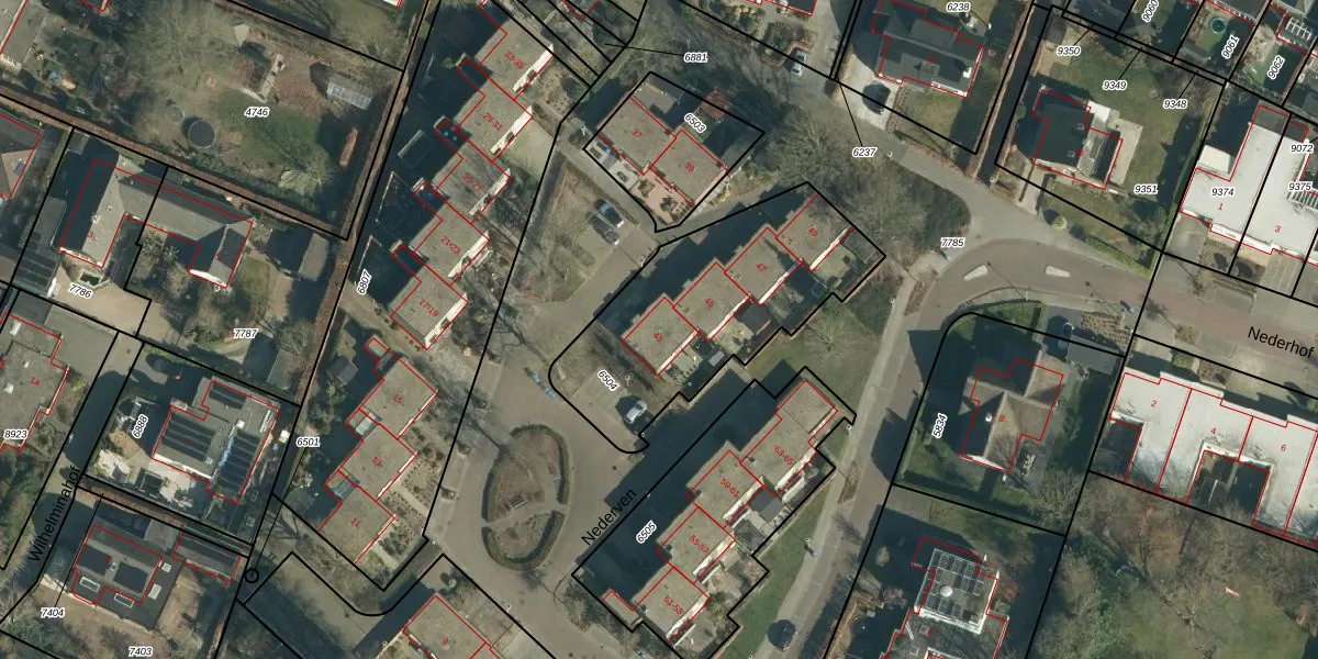 Het perceel waarop Nederven 43 staat heeft een oppervlakte van 900 m². Dit is een groot perceel. De perceeloppervlakte wordt geregistreerd door het Kadaster. Gedetailleerde informatie over de maten van dit perceel kunt u vinden in het rapport Kadastrale kaart met maatvoering van Nederven 43.