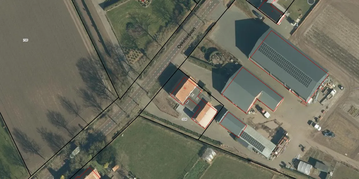 Het perceel waarop Oekelsebaan 2-c staat heeft een oppervlakte van 970 m². Dit is een groot perceel. De perceeloppervlakte wordt geregistreerd door het Kadaster. Gedetailleerde informatie over de maten van dit perceel kunt u vinden in het rapport Kadastrale kaart met maatvoering van Oekelsebaan 2-c.