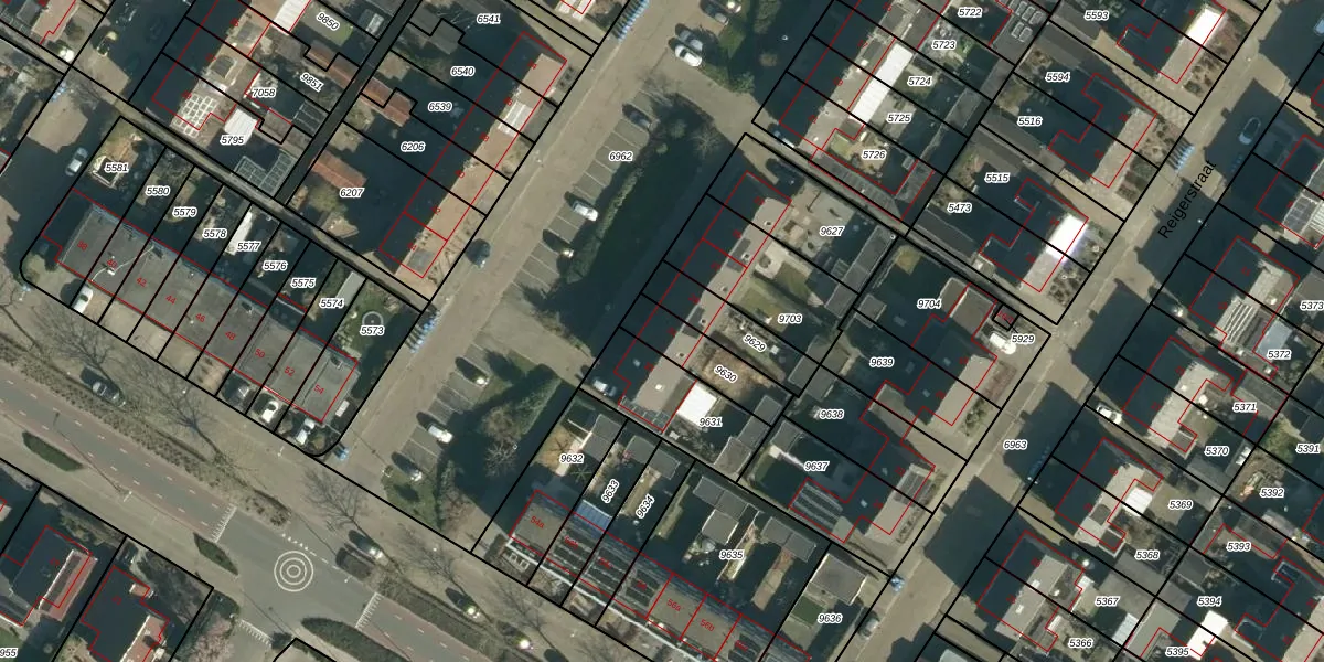 Het perceel waarop het adres ligt is ZDT02-K-9630. De afkorting 'ZDT02' staat voor kadastrale gemeente Zundert. Het perceel is kleiner dan gemiddeld in Zundert. Het perceel is 165 m² groot, terwijl het gemiddelde ligt op 6760,68 m². Het grootste perceel in de kadastrale gemeente is 71,5 ha. Het kleinste perceel heeft een oppervlakte van 0 m². Er zijn geen andere adressen aanwezig op het perceel. In de Basisregistratie Kadaster (BRK) werden de grenzen van het perceel geregistreerd op 06-12-2012.