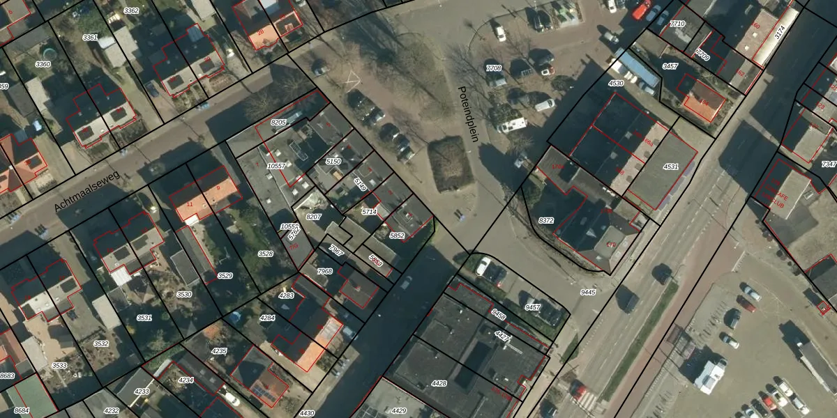 Poteindplein 1 is gelegen op kadastraal perceel ZDT02K5852. Deze kadastrale aanduiding is uniek en wordt gebruikt door het Kadaster om eigendomsrechten en andere zakelijke rechten vast te leggen. Het perceel maakt onderdeel uit van de kadastrale gemeente Zundert.