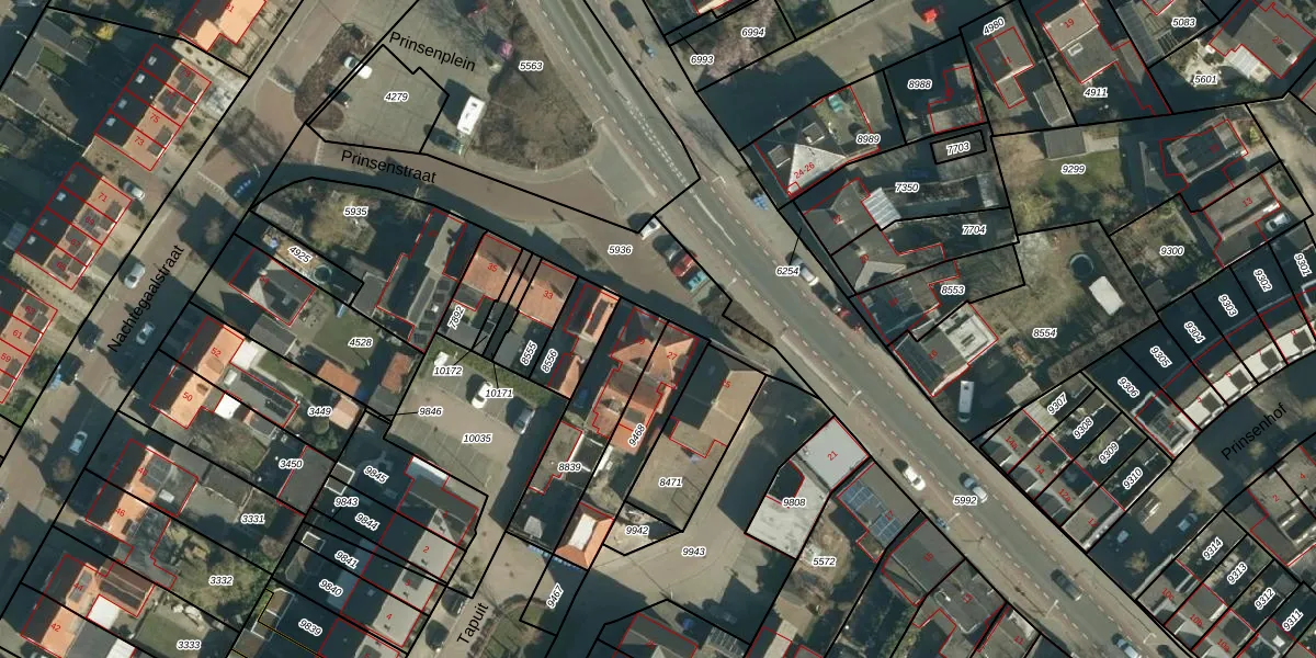 Het perceel waarop Prinsenstraat 29 staat heeft een oppervlakte van 317 m². Dit is een groot perceel. De perceeloppervlakte wordt geregistreerd door het Kadaster. Gedetailleerde informatie over de maten van dit perceel kunt u vinden in het rapport Kadastrale kaart met maatvoering van Prinsenstraat 29.