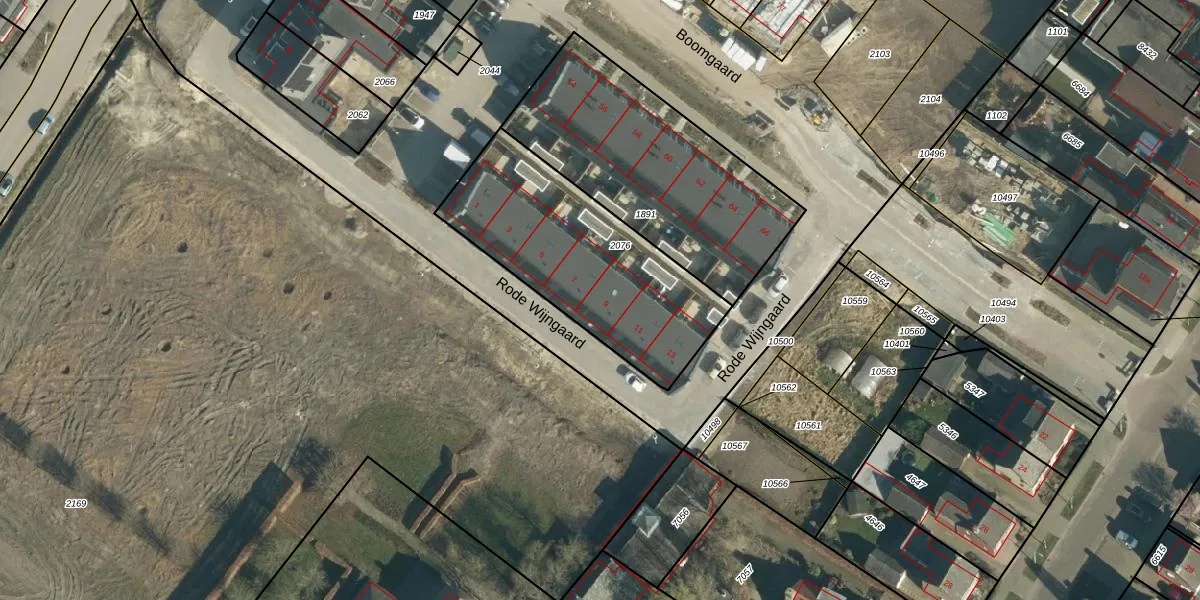 Rode Wijngaard 9 is gelegen op kadastraal perceel ZDT02P2076. Deze kadastrale aanduiding is uniek en wordt gebruikt door het Kadaster om eigendomsrechten en andere zakelijke rechten vast te leggen. Het perceel maakt onderdeel uit van de kadastrale gemeente Zundert.