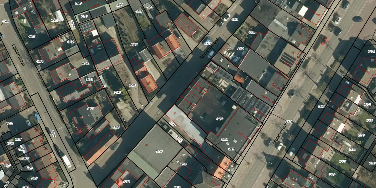 Het perceel waarop Rutvenstraat 15 staat heeft een oppervlakte van 1005 m². Dit is een zeer groot perceel. De perceeloppervlakte wordt geregistreerd door het Kadaster. Gedetailleerde informatie over de maten van dit perceel kunt u vinden in het rapport Kadastrale kaart met maatvoering van Rutvenstraat 15.