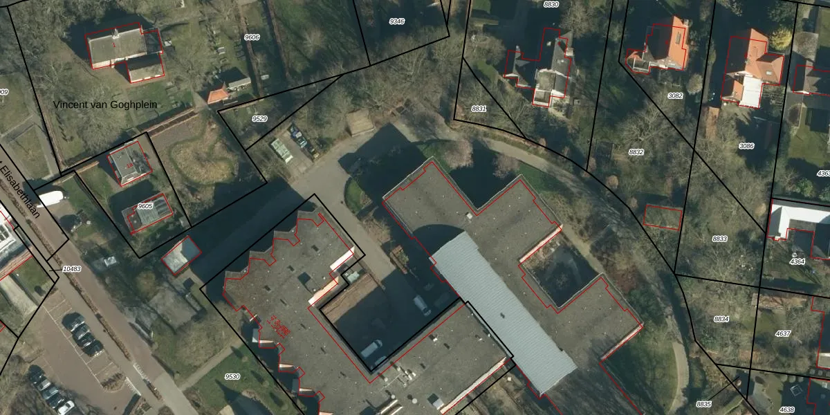 Het perceel waarop Sint Elisabethlaan 22 staat heeft een oppervlakte van 2,4 ha. Dit is een zeer groot perceel. De perceeloppervlakte wordt geregistreerd door het Kadaster. Gedetailleerde informatie over de maten van dit perceel kunt u vinden in het rapport Kadastrale kaart met maatvoering van Sint Elisabethlaan 22.