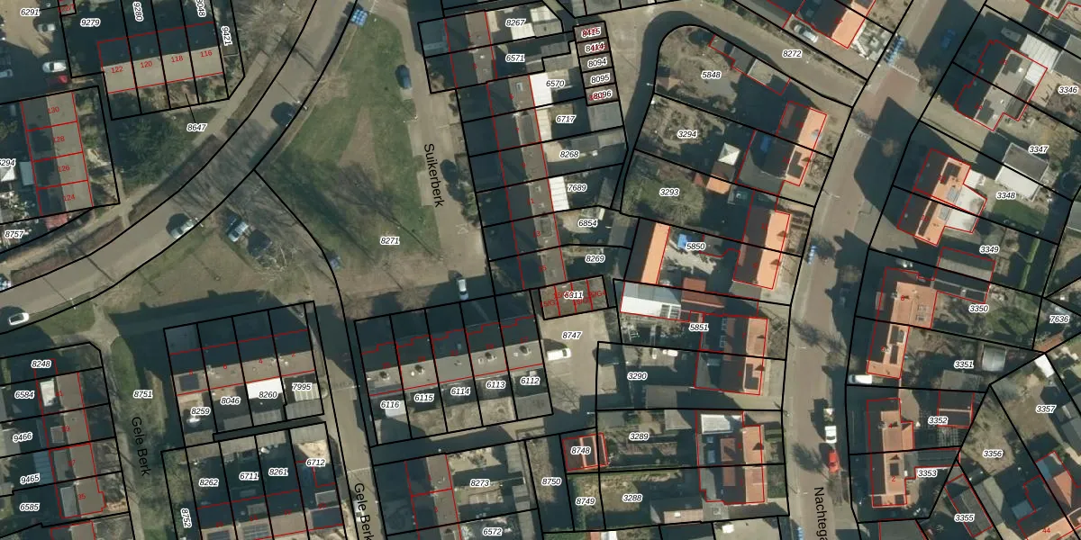 Het perceel waarop Suikerberk 15 staat heeft een oppervlakte van 173 m². Dit is een middelgroot perceel. De perceeloppervlakte wordt geregistreerd door het Kadaster. Gedetailleerde informatie over de maten van dit perceel kunt u vinden in het rapport Kadastrale kaart met maatvoering van Suikerberk 15.