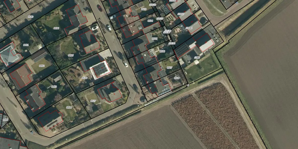Turnstraat 14 is gelegen op kadastraal perceel ZDT02K8507. Deze kadastrale aanduiding is uniek en wordt gebruikt door het Kadaster om eigendomsrechten en andere zakelijke rechten vast te leggen. Het perceel maakt onderdeel uit van de kadastrale gemeente Zundert.