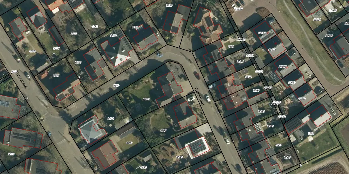 Turnstraat 15 is gelegen op kadastraal perceel ZDT02K8496. Deze kadastrale aanduiding is uniek en wordt gebruikt door het Kadaster om eigendomsrechten en andere zakelijke rechten vast te leggen. Het perceel maakt onderdeel uit van de kadastrale gemeente Zundert.