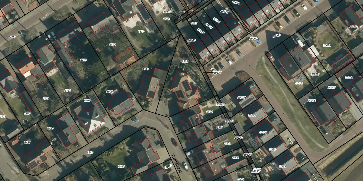Het perceel waarop Turnstraat 28 staat heeft een oppervlakte van 733 m². Dit is een groot perceel. De perceeloppervlakte wordt geregistreerd door het Kadaster. Gedetailleerde informatie over de maten van dit perceel kunt u vinden in het rapport Kadastrale kaart met maatvoering van Turnstraat 28.