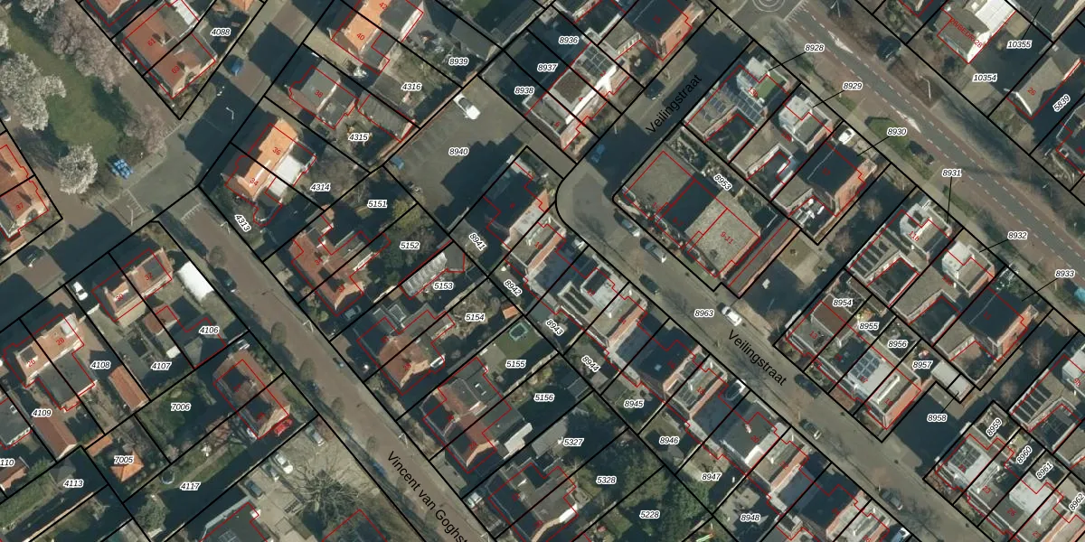 Gebruik de zoekbalk of klik op een perceel voor informatie over de adressen binnen dit perceel.