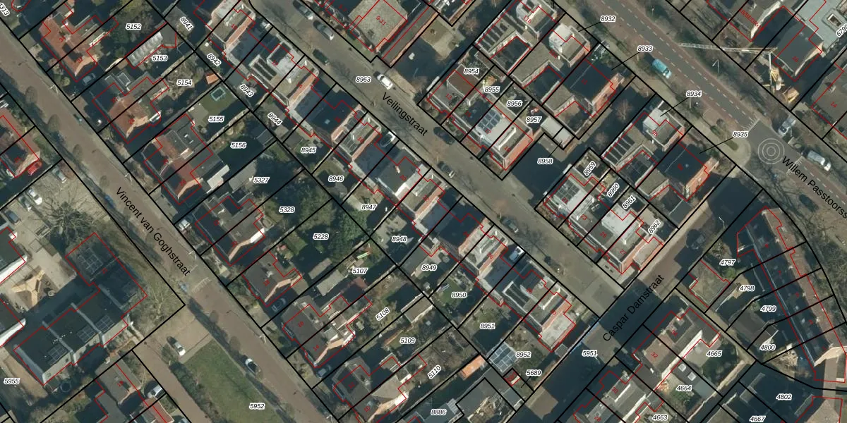 Het perceel waarop Veilingstraat 22 staat heeft een oppervlakte van 224 m². Dit is een middelgroot perceel. De perceeloppervlakte wordt geregistreerd door het Kadaster. Gedetailleerde informatie over de maten van dit perceel kunt u vinden in het rapport Kadastrale kaart met maatvoering van Veilingstraat 22.