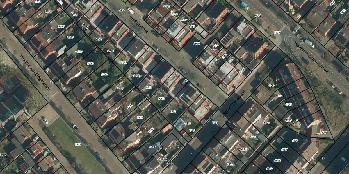 Het perceel waarop Veilingstraat 26 staat heeft een oppervlakte van 241 m². Dit is een middelgroot perceel. De perceeloppervlakte wordt geregistreerd door het Kadaster. Gedetailleerde informatie over de maten van dit perceel kunt u vinden in het rapport Kadastrale kaart met maatvoering van Veilingstraat 26.