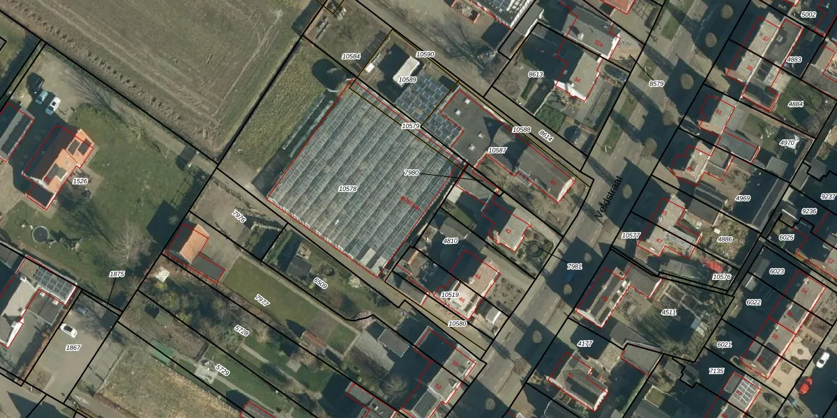 Het perceel waarop Veldstraat 46-BEDR staat heeft een oppervlakte van 1876 m². Dit is een zeer groot perceel. De perceeloppervlakte wordt geregistreerd door het Kadaster. Gedetailleerde informatie over de maten van dit perceel kunt u vinden in het rapport Kadastrale kaart met maatvoering van Veldstraat 46-BEDR.