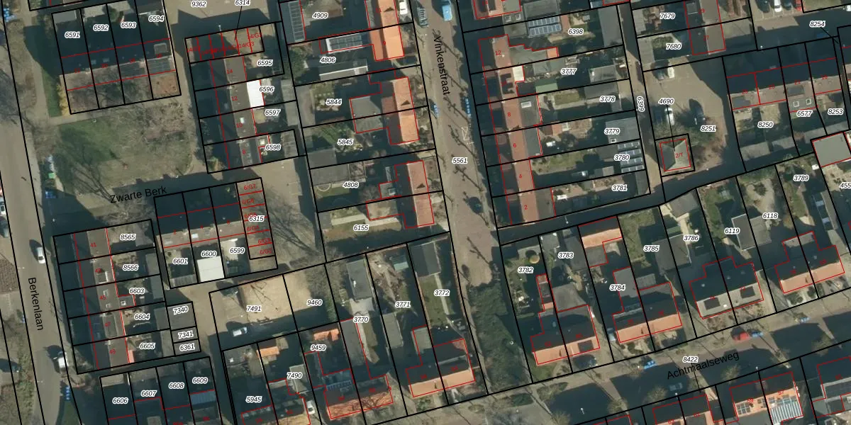 Het perceel waarop Vinkenstraat 1 staat heeft een oppervlakte van 330 m². Dit is een groot perceel. De perceeloppervlakte wordt geregistreerd door het Kadaster. Gedetailleerde informatie over de maten van dit perceel kunt u vinden in het rapport Kadastrale kaart met maatvoering van Vinkenstraat 1.