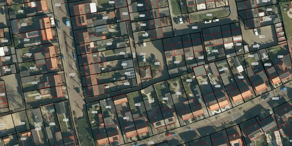 Het perceel waarop Vinkenstraat 2-T staat heeft een oppervlakte van 70 m². Dit is een klein perceel. De perceeloppervlakte wordt geregistreerd door het Kadaster. Gedetailleerde informatie over de maten van dit perceel kunt u vinden in het rapport Kadastrale kaart met maatvoering van Vinkenstraat 2-T.