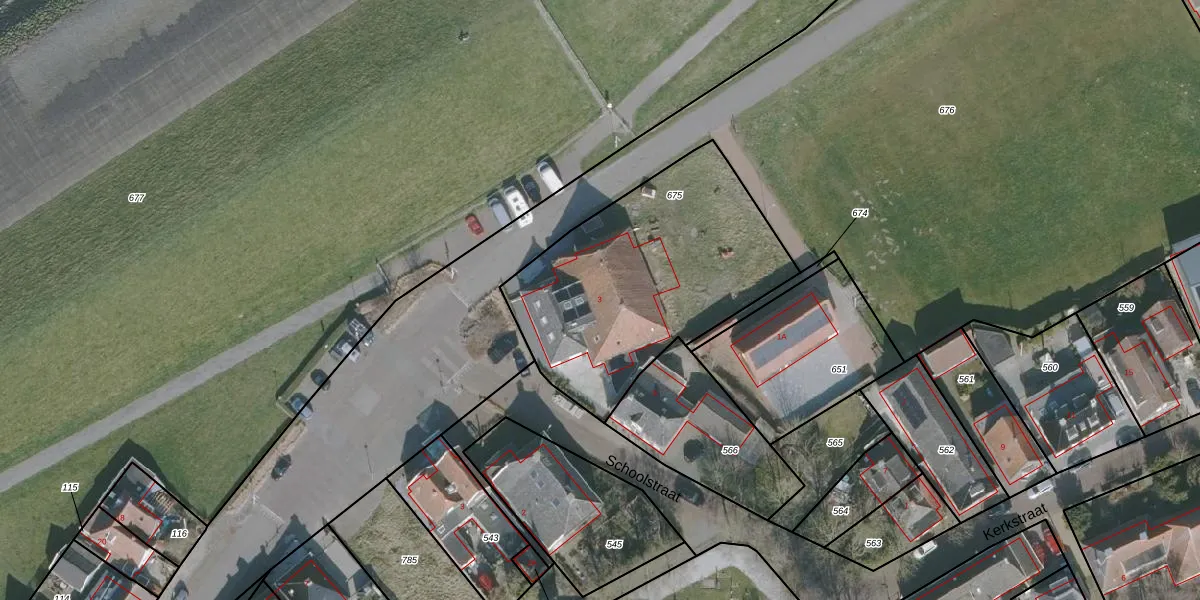 Schoolstraat 3 is gelegen op kadastraal perceel WMS03D675. Deze kadastrale aanduiding is uniek en wordt gebruikt door het Kadaster om eigendomsrechten en andere zakelijke rechten vast te leggen. Het perceel maakt onderdeel uit van de kadastrale gemeente Witmarsum.