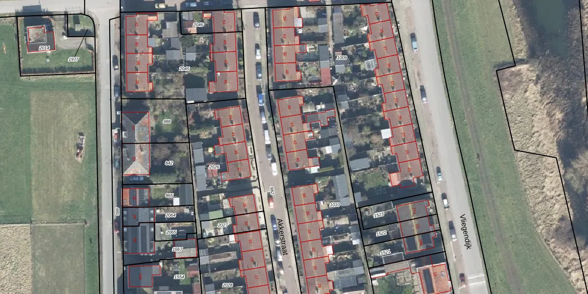 Het perceel waarop Akkerstraat 42 staat heeft een oppervlakte van 1960 m². Dit is een zeer groot perceel. De perceeloppervlakte wordt geregistreerd door het Kadaster. Gedetailleerde informatie over de maten van dit perceel kunt u vinden in het rapport Kadastrale kaart met maatvoering van Akkerstraat 42.