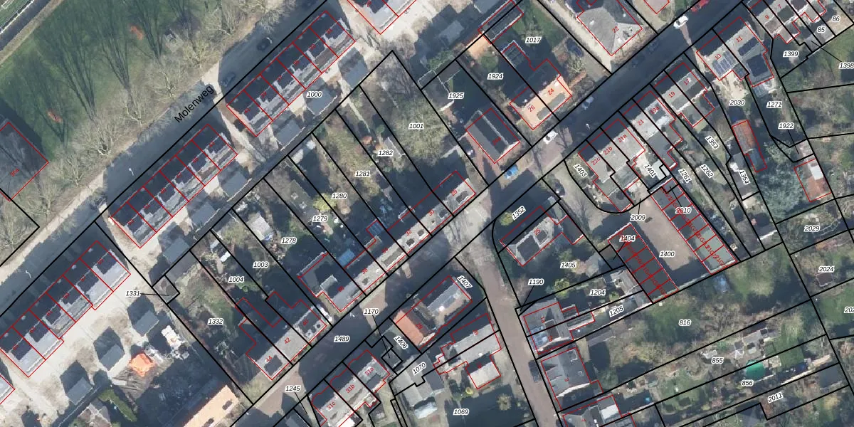 Gebruik de zoekbalk of klik op een perceel voor informatie over de adressen binnen dit perceel.