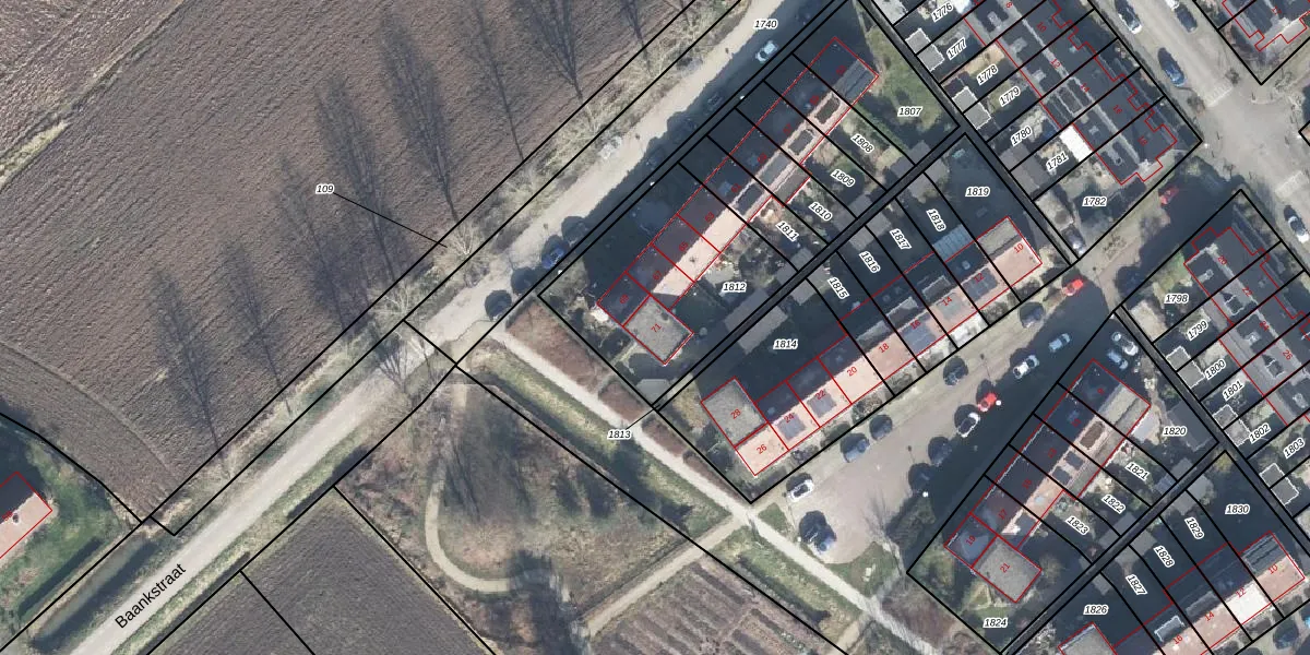 Het perceel waarop Baankstraat 71 staat heeft een oppervlakte van 735 m². Dit is een groot perceel. De perceeloppervlakte wordt geregistreerd door het Kadaster. Gedetailleerde informatie over de maten van dit perceel kunt u vinden in het rapport Kadastrale kaart met maatvoering van Baankstraat 71.